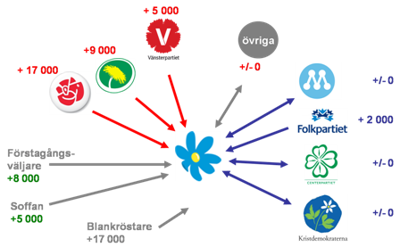 Mycket intressant information. Jag har väl trott att det kunde lika något i vulgärpropagandan från oppositionen att Sverigedemokraterna skulle vara väljare från den borgerliga kanten och att förslaget om kontrakt för invandrare skulle vara ett försök att locka tillbaks väljare som gått till SD.Strömmarna till och från alliansen tog väsentligen ut varann skriver du. Var volymerna stora eller små?