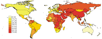 Figuren visar Freedom House-data över graden av pressfrihet i världen. Ju rödare desto längre ifrån idealet om en fri press. Läs mer om mitt projekt på QoG:s hemsida. Här kan du också ladda hem ett av världens största och bästa databaser för länderjämförande studier.
