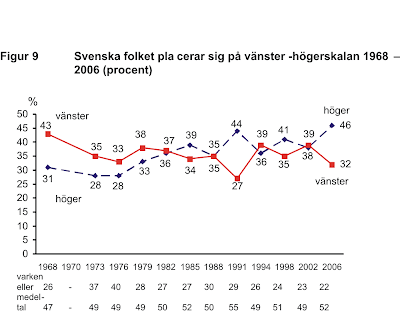 I samband med valet 2006 var andelen högeridentifierade fler än någonsin tidigare (46 procent), till och med högre än i samband med den beryktade högervågen i slutet av 1980-talet. Anledningen till att det inte resulterat i fler högerregeringar är att socialdemokraterna (eller s-blocket) alltid lyckats ta hem spelet om den fjärdedel av väljarkåren som identifierar sig som ”mitten”.