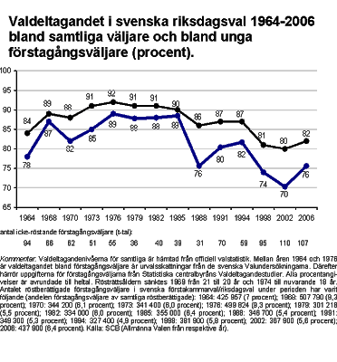 Det rekordstora antalet förstagångsväljare i valet 2010 (497 000 väljare enligt SCB) är för övrigt inte något rekord. I valen 1968 och 1976 var antalet förstagångsväljare faktiskt större (508 000 respektive 500 000 väljare) än vad som är fallet inför 2010.