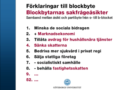 Frågan om att tillåta avdrag för hushållsnära tjänster tillhörde en av de tyngsta förklaringarna till varför så många s-blocksväljare 2002 bytte block och röstade på Alliansen i 2006 års riksdagsval. Har socialdemokraterna skjutit sig själva i foten genom att ta ställning för ett avskaffande (det kostar att ta tillbaka redan utdelat godis)? Eller är valet av ideologisk vattendelare i själva verket noga uträknat: kanske är strategin rentav utprövad och utvärderad med hjälp av professionella kampanjmetoder som interna fokusgrupper och väljarstudier (den eventuella kostnaden i väljarflykt i den lilla grupp som berörs av hushållsnära tjänster uppvägs av avsevärt större vinster i andra grupper)?