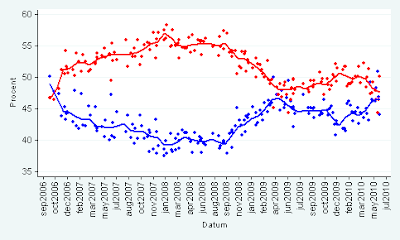 Det mest anmärkningsvärda är väl SD:s framryckning. Från ca 0,8 % före riksdagsvalet 2006 till 3,9 % nu. SD har av allt att döma för flera år sedan passerat fyraprocentspärren. Det som återstår att se nu är med hur god marginal partiet klarar den. Blir de vågmästare? Klarar partiet partistyrelsens målsättning om att bli tredje största parti?