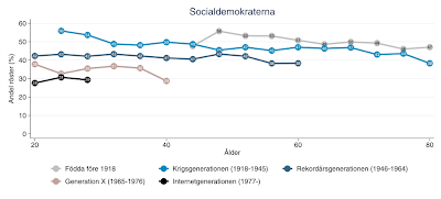 Socialdemokratin har under hela efterkrigstiden, i val efter val, lyckats att vara starkast i de grupper där det är viktigast att vara starkast: nämligen i de breda medelinkomstskikten. S har hela tiden lyckats förändra partiideologin i takt med väljarkårens ökade välstånd (eller förborgerligande om man så vill). Socialdemokratins största utmaning är att försöka göra om konststycket. Fast den här gången är förutsättningarna radikalt annorlunda: Moderniseringsepoken är över. Industrisamhällets logik och maktstrukturer är obsoleta. Hjärnkraft driver ekonomi och samhällsutveckling, inte muskel-, ång- eller elkraft. Kollektivistiska ideal och värderingar står i nedan. Sverige rör sig in i ett globaliserat, mångkulturellt informations- och nätverkssamhälle. Svenskarna är världens mest individualistiska folk enligt WVS. Det är i denna kontext Socialdemokratin söker ett nytt raison d’être (läs Jonas Hinnfors mycket läsvärda debattartikel i GP idag).
