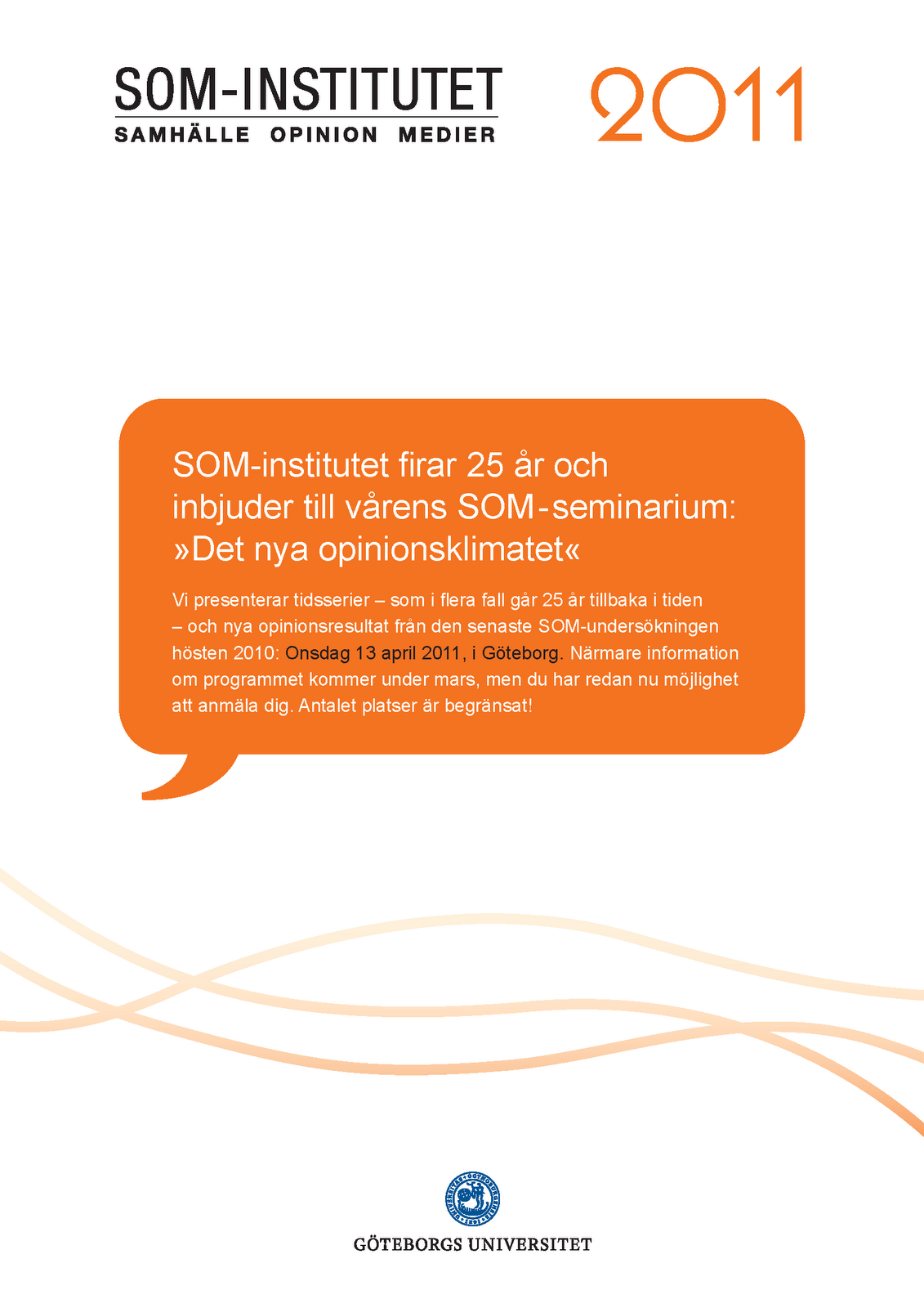 Missa inte att anmäla dig till SOM-institutets vårseminarium ”Det nya opinionsklimatet” i Göteborg den 13 april. Då presenteras de första spännande analyserna av data från höstens SOM-undersökningar.