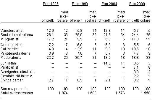 Källa: Svenska Europaparlamentsvalundersökningar 1995-2009: SCB/Svenska valforskningsprogrammet vid Göteborgs universitet.