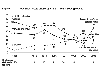 Finns det då någon efterfrågan för mittenregeringar i Sverige? Ja, till att börja med kan påpekas att mellan 25 och 33 procent av väljarkåren själva definierar sig som mitten i politiken (”varken till vänster eller till höger” på fem- eller elvagradiga skalor).