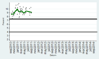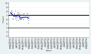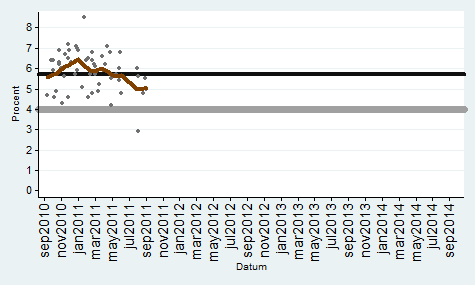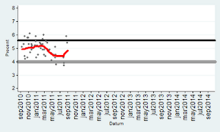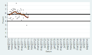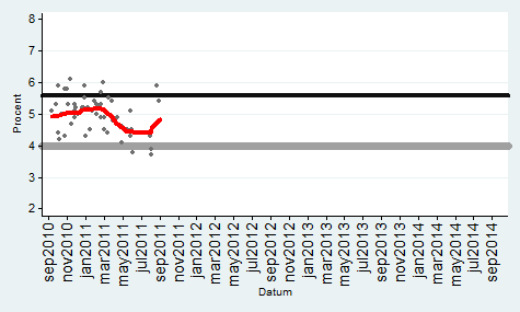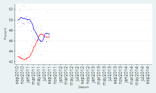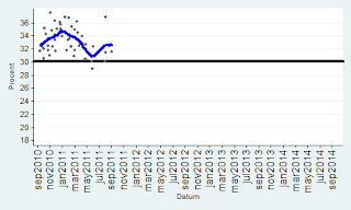Är det inte dags att uppdatera Mätningarnas Mätning så att du får bort den bisarra augusti-mätningen från Synovate, Henrik? I dag har dessutom Demoskop-mätningen kommit:http://www.demoskop.se/?id=1623Där vi får veta att:\”Socialdemokraterna går däremot framåt med 1,1 procentenheter till 5,9%.\”;)