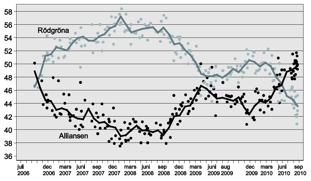 Figur: Opinionsförändringar under mandatperioden 2006-2010.
