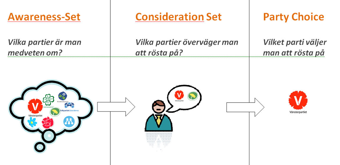 Grundidén bakom partiuppsättningsmodeller (CSM) är mycket enkel. Väljare har en uppsättning alternativ (partier) som de är medvetna om (awareness set). Från denna uppsättning alternativ formas en övervägandeuppsättning (consideration set) som består av partier man aktivt överväger i samband med ett politiskt val (även icke-röstning kan vara aktuellt att modellera här). Från denna partiuppsättning väljs slutligen en ”vinnare”. Målsättningen är givetvis att försöka reda ut vilka förklaringar som är viktigast i de olika beslutsstegen: Varför hamnar vissa partier under övervägande hos vissa väljare? Och vilka ”tie-breakers” är viktiga när individuella väljare till slut fattar ett beslut att rösta på parti X och inte på parti Y eller Z i sin partiuppsättning?