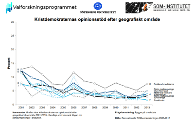 Idag släpper vi tabellrapporten om Kristdemokraternas opinionsutveckling 2001-2013. Under rubrikerna nedan kan du läsa om några av de mest intressanta resultaten.
