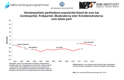 Du laddar ned hela partirapporten för Vänsterpartiet från Valforskningsprogrammets hemsida här. http://www.valforskning.pol.gu.se/digitalAssets/1489/1489643_utvecklingen-av-partisympatier-2001-2013-v–nsterpartiet.pdf. Nedan kan du läsa om några resultat som vi tyckte var särskilt spännande i den här rapporten.