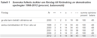 Vem vinner och vem förlorar-diskussionen tycker jag är relativt ointressant i förhållande till en mer principiell diskussion om rösträtt. Det finns en lång rad diskussionspunkter när det gäller vilka grupper som bör ha rätt att rösta. Bör svenskar som bor utomlands få rösta alls? Bör personer som gjort sig skyldiga till brott mot demokratiskt beslutade lagar tillfälligt fråntas sin rösträtt? Finns det egentligen några bra argument för varför inte alla medborgare, även barn, inte borde ha rätt att rösta (ombud via vårdnadshavare).(Och förövrigt skulle valresultatet inte ändras särskilt mycket om föräldrar fick lika många röster som de har barn.)