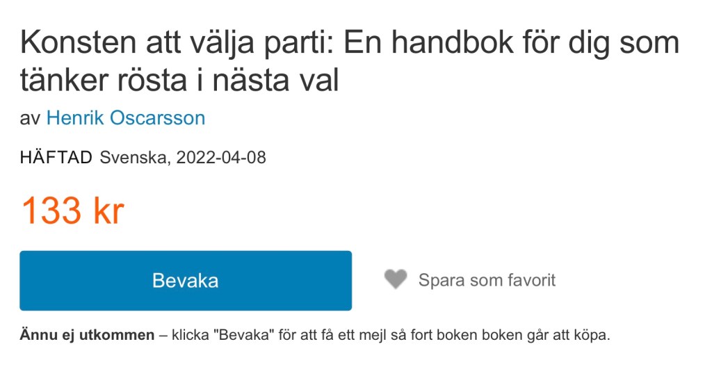 Nu kan du bevaka boksläppet för min populärvetenskapliga bok ”Konsten att välja parti. En handbok för dig som tänker rösta i nästa val”.